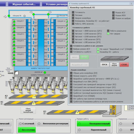 АСУ газоочисткой ДП №5 включает в себя: систему управления регенерацией фильтра Ф-1-9400-04С, систему управления пылеуборкой и систему управления клапанами пневмообрушения.